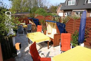 Zum Appartement gehört neben einem Pkw-Stellplatz auch eine Terrasse mit Strandkorb, Tisch und Stühle sowie einem gemeinschaftlich zu nutzenden Grill und eine überdachte Abstellmöglichkeit für Ihre Fahrräder. Die Tierhaltung und das Rauchen sind leider nicht gestattet.