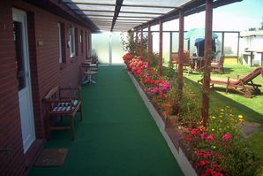 große gemütliche Ferienwohnung, die auf Ihren ca. 40 qm Platz für bis zu 3 Personen bietet. Im Wohnraum ist eine offene Küchenzeile mit einer Kühl-/Gefrierkombination, 4-Platten Cerankochfeld, Mikrowelle, Geschirrspüler, Kaffeemaschine, Toaster, Eierkocher und alles was man sonst so in einer Küche braucht zu finden. Ein großer, gemütlicher Sessel der sich zu einem vollwertigen Bett ausklappen lässt, ein Esstisch für drei Personen, sowie ein Relaxsessel samt Couchtisch laden zum Verweilen ein. Ein Satelliten-TV und eine kleine Kompaktanlage mit CD-Player fehlen ebenfalls nicht. Im separaten Schlafraum mit Doppelbett befinden sich noch Nachtschränke, ein Sideboard mit Satelliten-TV und ein großer Kleiderschrank, der ausreichend Stauraum bietet. Kostenloser Internetzugang via WLAN. Duschbad sowie Flur/Windfang mit Garderobe. Direkter Zugang vom großen Garten. Überdachter Laubengang. PKW-Stellplatz am Haus.