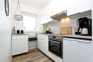 Das neu renovierte 1 Zimmer Appartement bietet auf seinen ca. 38 m² Platz für 2 Personen. Aufgeteilt ist es wie folgt: 1 Wohn-/Schlafraum mit Doppelbett, 2 Sitzer-Couch, großer Esstisch am Fenster, Schrank mit ausreichend Stauraum und SAT-Flat-TV. Die neue separate Küche verfügt über ein 4 Platten Cerankochfeld, Backofen, Kühlschrank mit Gefrierfach, sowie alle Utensilien, die Sie benötigen, um sich selbst zu versorgen. Neues Duschbad/WC; Flur mit Garderobe.