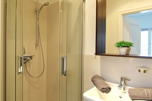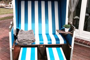 hochwertig und modern ausgestattetes 2 Zi.-App. in zentraler Einkaufs- und Flanierlage sowie in kurzer Entfernung zum Badestrand, Leuchtturm und dem Golfplatz. Es verfügt über eine Größe von ca. 40 m² und bietet Platz für 2 Personen mit sonniger Süd-/Westterrasse und kleinem Gartenanteil. Ein separater Schlafraum mit Doppelbett, Regal und kleinem Schrank. Vom Schlafraum haben Sie direkten Zugang zum Duschbad/WC mit Waschtisch und offenem Regalschrank als Ablagemöglichkeit. Wohn-/Schlafraum mit Schlafcouch für eine Person, Tisch, Esstisch mit Stühlen, großer Kleiderschrank und Sat-TV. Offene Einbauküche mit Cerankochfeld, Backofen, Geschirrspüler, Kühlschrank mit kleinem Gefrierfach, Kaffeemaschine, etc.