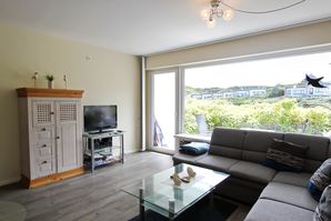 ebenerdig, mit ca. 55qm. Im hellen Wohnraum ist eine große, gemütliche Sofaecke, ein Glastisch, eine Kompaktanlage mit Radio u. CD-Player, ein Glasschrank mit SAT-Flat-TV sowie ein Essplatz für 4 Personen. Sie haben einen direkten Zugang zur Südterrasse mit Terrassenmöbel. Die kleine offene Küche mit Ceranfeld, Geschirrspüler, Kühlschrank mit Gefrierfach, Mikrowelle, Kaffeemaschine, Wasserkocher und Toaster bietet alles, um sich selbst zu versorgen.