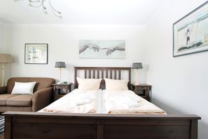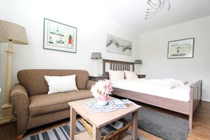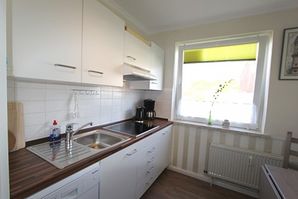 renoviertes 1 Zimmer Appartement mit ca. 32 m² im Hochparterre unweit des Hörnumer Golfplatzes; Wohn-/Schlafraum mit Doppelbett, eine gemütliche 2-Sitzer-Couch, Tisch, Vitrinenschrank, Kleiderschrank, Sat-Flat-TV; separate Küche mit Cerankochfeld, Geschirrspüler, Kühlschrank mit kleinem Gefrierfach, Mikrowelle mit Grill und Backofen, Esstisch und Stühle für 2 Personen, Einbauschrank; Wannenbad/WC; Flur mit Garderobe und Schuhschrank. Das ganze Appartement ist mit Venyl-PVC ausgestattet.