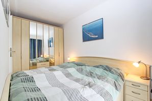 gepflegtes 2 Zi.-App. mit ca. 41 m² im Herzen von Hörnum. Die Nichtraucher Wohnung befindet sich im Hochparterre, in einem Mehrfamilienhaus, und bietet Platz für bis zu 4 Personen (max. 3 Erwachsene). Sie ist aufgeteilt auf ein Wohn-/Schlafraum mit einer gemütlichen Schlafcouch (1,30m x 1,95m), Tisch, zwei Korbsessel, Vitrinen Schrank, Sat-TV und ein DVD-Player. Von Wohnzimmer gelangen zum kleinen Schlafzimmer mit einem Doppelbett (zwei Matratzen), einem großen Kleiderschrank, der ausreichend Stauraum bietet, sowie den Zugang zum Südbalkon mit Balkonmöbel.
