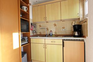 Die kleine, gemütliche Ferienwohnung befindet sich Hörnum-Nord und bietet auf seinen ca. 28qm Platz für bis zu 2 Personen. Das Appartementhaus liegt in unmittelbarer Nähe zum Weststrand. Es verfügt über ein Wohn-/Schlafraum mit großer Schrankwand und integriertem Doppelschrankbett. Ein Essplatz für zwei Personen sowie zwei Sessel mit kleinem Tisch sind ebenfalls vorhanden. Im Eingangsbereich ist eine Küchenzeile mit kleinem Kochfeld (2 Platten), Kühlschrank mit kleinem Gefrierfach sowie einer Mikrowelle vorhanden. In den Schränken finden Sie sämtliche Küchenutensilien, die Sie benötigen, um sich selbst zu versorgen. Vor dem Eingang zum Appartement befindet sich die Südterrasse mit Terrassenmöbel. Ein kleines Duschbad inklusive WC ist ebenfalls vorhanden. Öffentlicher PKW-Stellplatz am Haus.